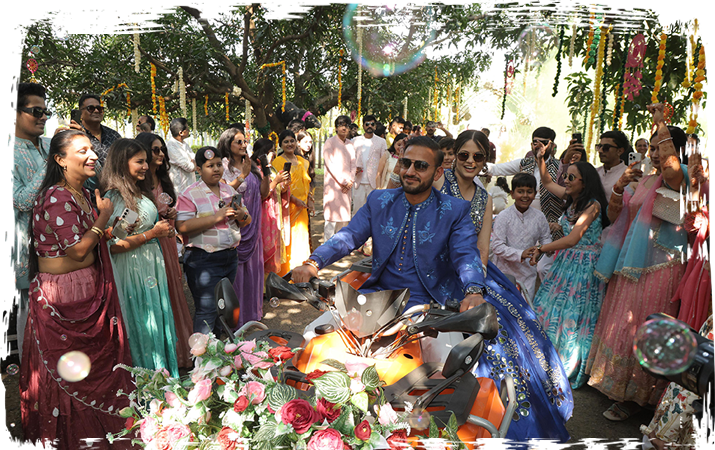 Celebrate amidst nature at the elegant half-acre Mridang Garden, a beautifully manicured green space filled with blooming flowers and lush greenery-perfect for wedding receptions, sangeet, and open-air festivities that create timeless memories.